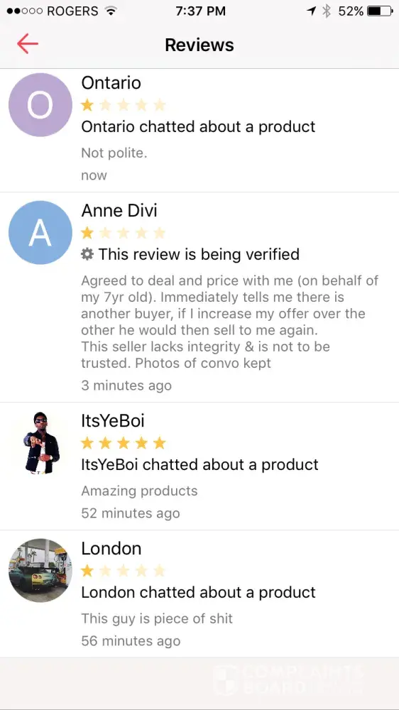 Guess I am disappointed that this type of review system is allowed. Maybe it should only be on items actually sold? Or something letgo can review and approve.