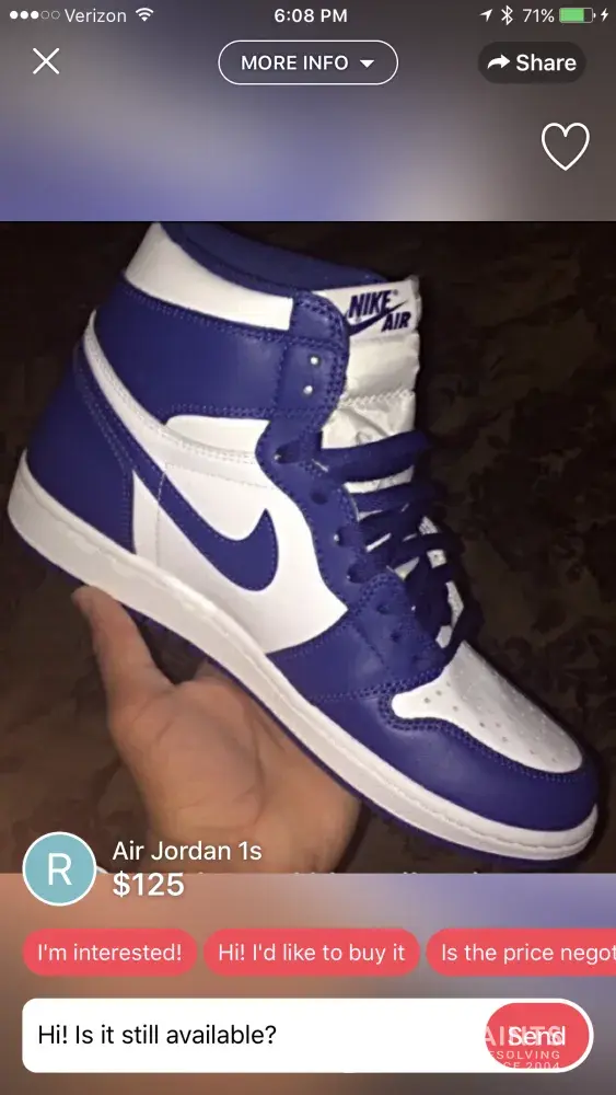 I sent and received at least twenty messages back and forth with a user. I sent her air Jordan 8 bugs bunny, air Jordan black 8 and beats by dre headphones.