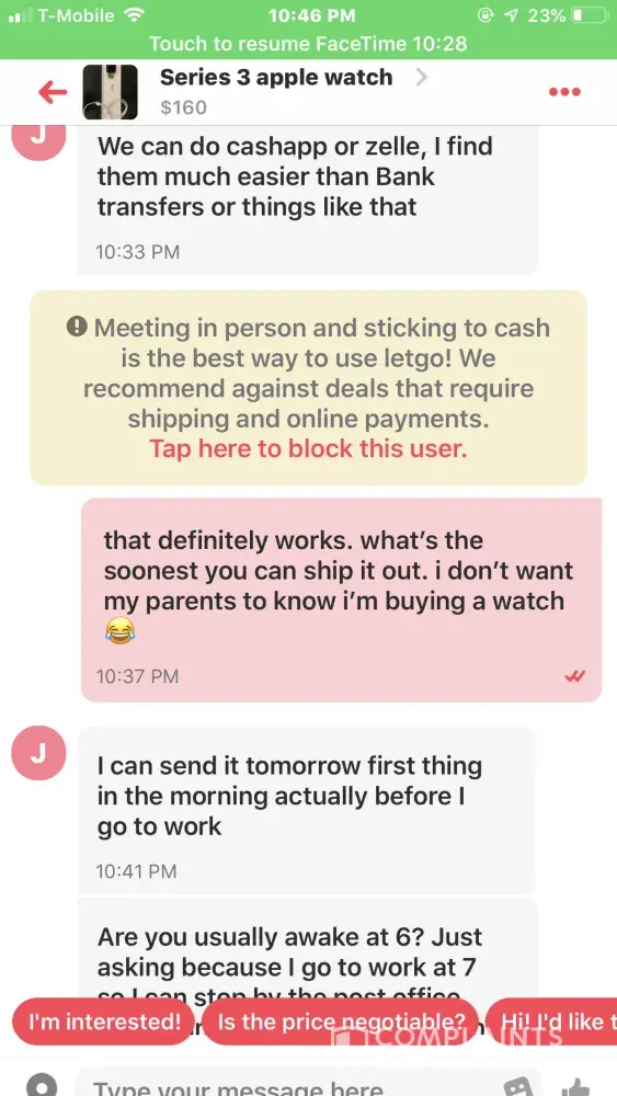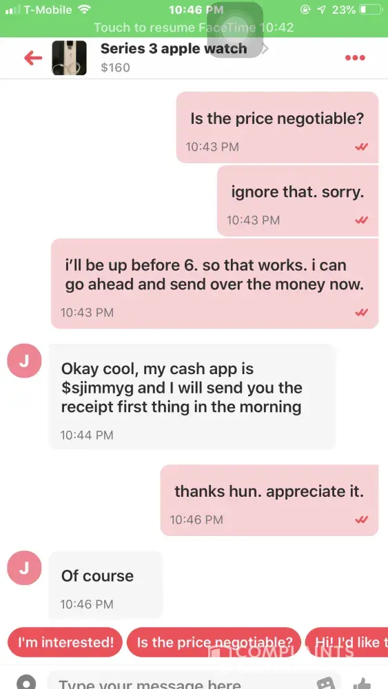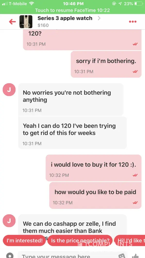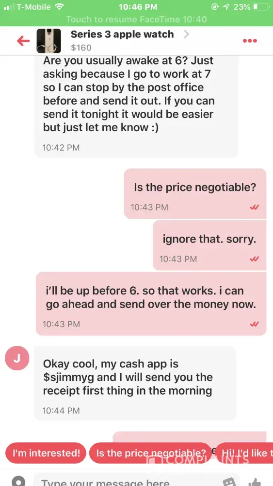 Hello, I'm worrying my butt off. I did something that was probably stupid and I need your guys help! I believe I was scammed out of $120 for Series 3 Apple Watch. I have screenshots of the conversation last night and he still hasn't got back to me. I feel as if he's avoiding me and won't block me because he doesn't want to make it suspicious. I don't know what to do, this sucks. I cash app him the money and stated he would send me a picture of the receipt in the morning and that he has "work" at seven so he would send it out before then. I'm really torn on what I should do. I don't know if I can get my money back now or if you guys can give me any possible idea on what I can do. I should've been smarter than this. When I first texted him he said he was trying to get rid of it for weeks when it's been up for 1month or longer. He had 70 hearts (favorites) and i'm not sure if he's done this to others. If you guys can get back to me. Please help! I even made a different account to see what he would say and he said it was still available even though I paid for it to be mine. I have screenshots and proof that I paid him. I have his cash app once again, and he just uploaded a picture of "him". He told me to wait around 3PM today because he was still at "work" but never got back to me. I'm highly upset, I know I should've waited to pay for it after I received the item, I was just so excited, please help me.
