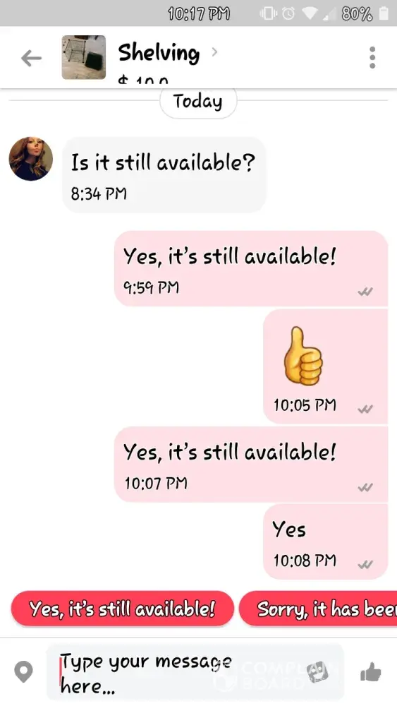 It will not let me reply to potential buyer of my things it shows it sends but the little check mark does not turn red indicating the message has been sent I am receiving multiple messages and cannot reply fix it plz & thank you it has been like this for 2 days now I have service and wifi so being connected is not the issue I am unsure what is I would please like some help on the matter