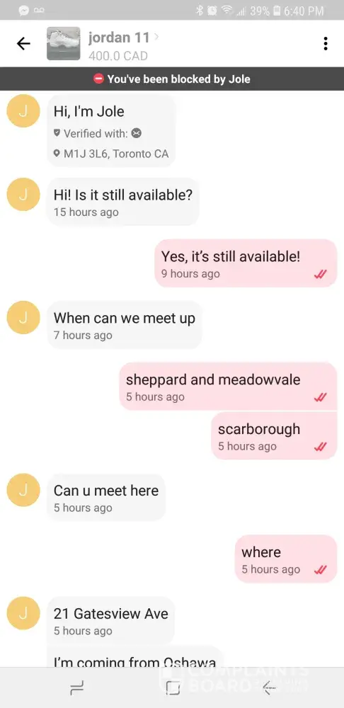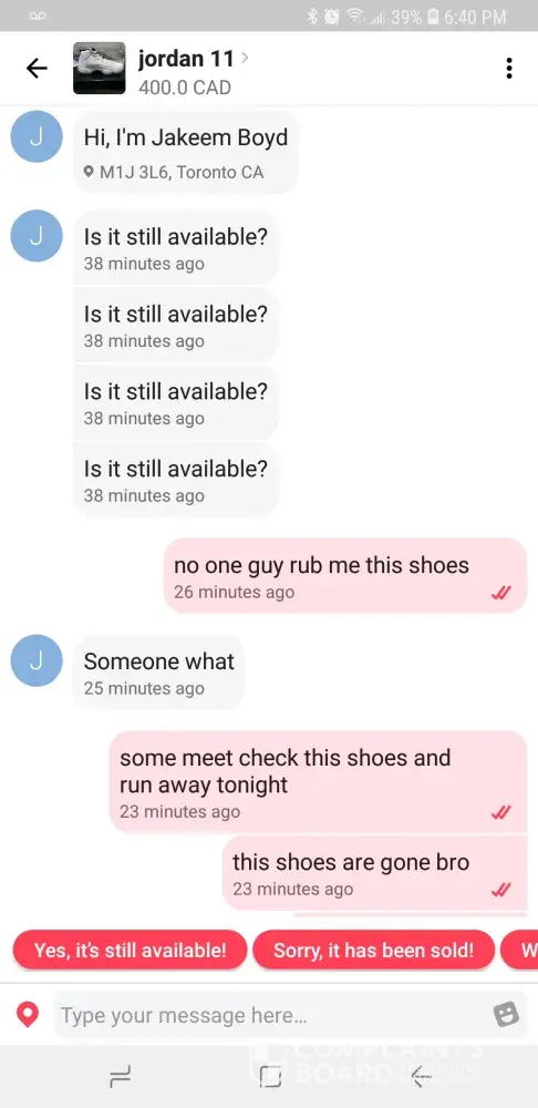 hi i just want to report that some interested on my shoes to buy and i meet him tonight...and when i was in the meeting place he come and check my shoes out of the window of my car and he run away with my shoes...i only got the box of my shoes...and i think he using other name...bec.when i got home someone mgs.me and when i check the address are the same