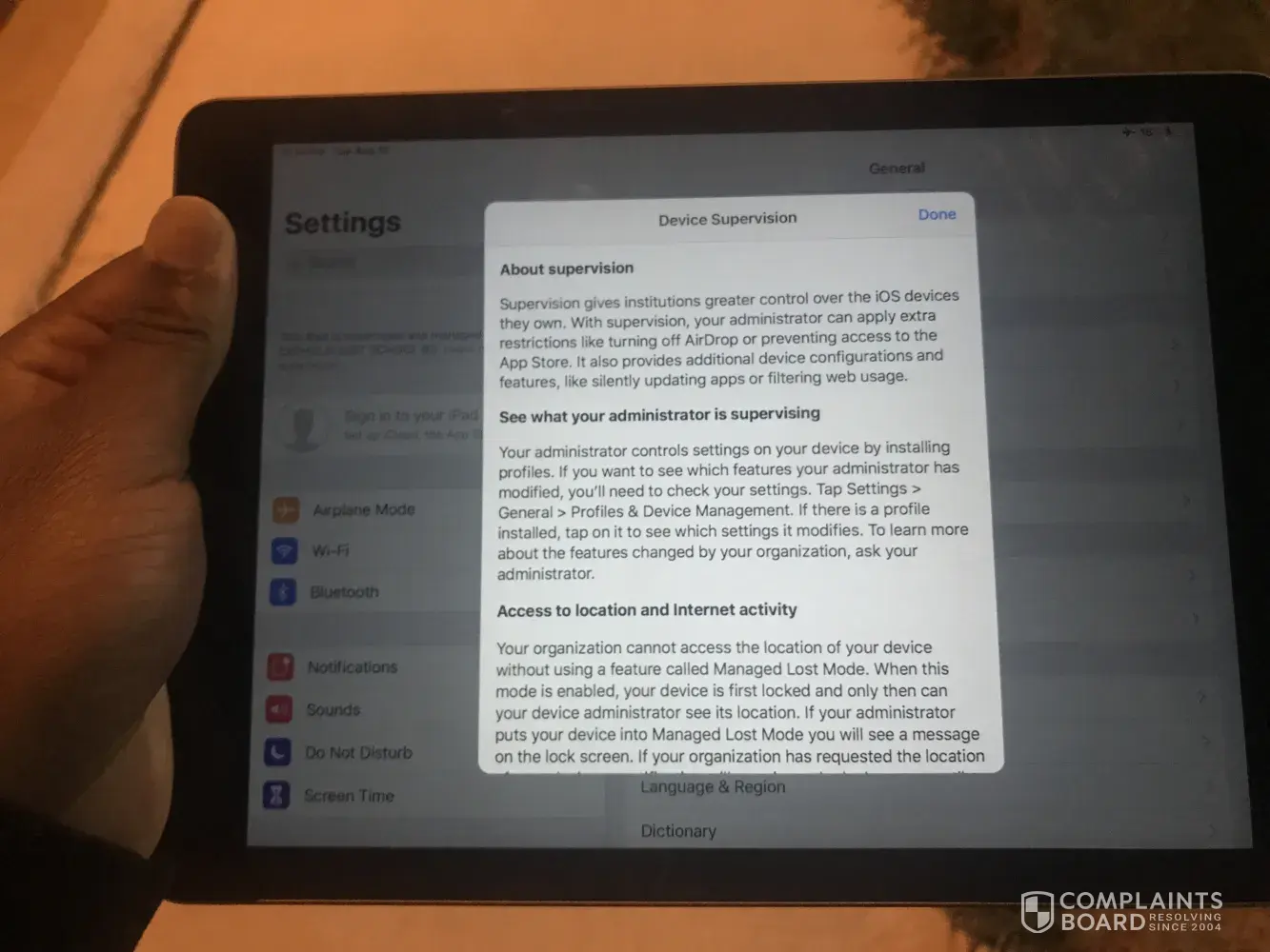 I met up with a guy to buy an ipad 5th generation which turns out to be turned out to be under device supervision. Meaning they stole it now i just want to return it to the catholic district school bd hopefully they can compensate me for the money i got scammed.