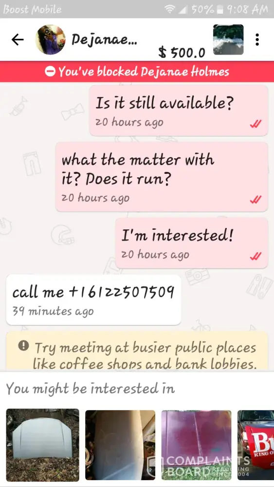 I was looking to buy an item from this person and they are acting very sketchy. They are wanting to meet at a super early time, at a restaurant that isn't even open till a lot later.
