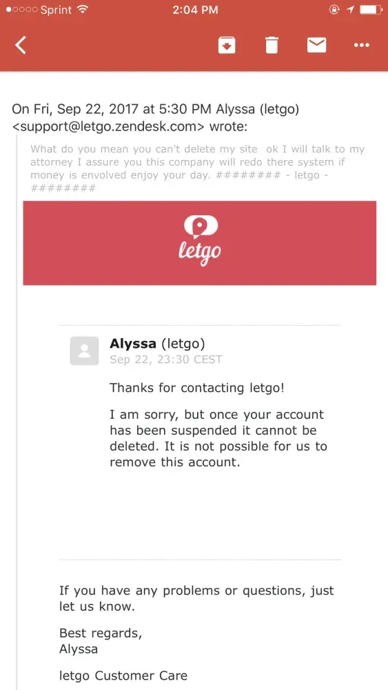 But when ask to delete the site talk to 7. Different representative and they all told me seven different excuses they told me because account was suspended which was crazy that I cannot delete this site so now I'm looking for legal counsel. Ridiculous