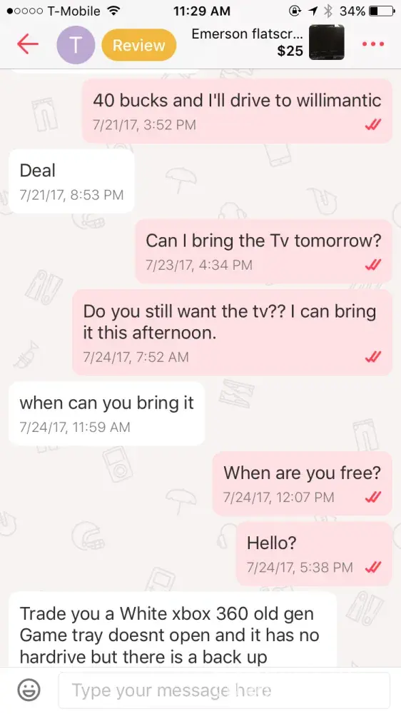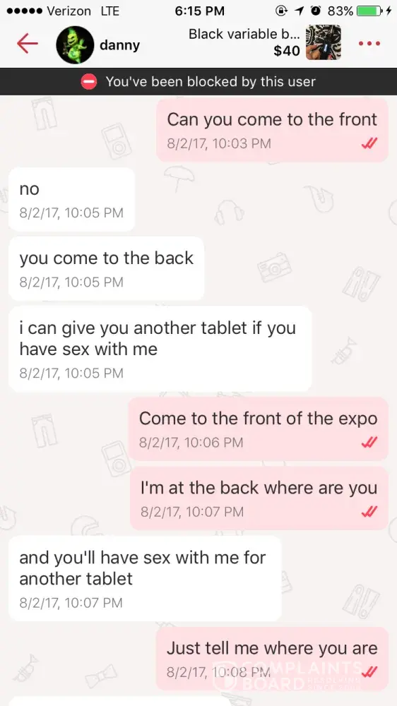 Got asked to sell my body for products and had the audacity to give me a bad review. He met me AT NIGHT and then tried to get me to sell my body to him for a tablet. It's unnerving and I'm glad my boyfriend was with me
