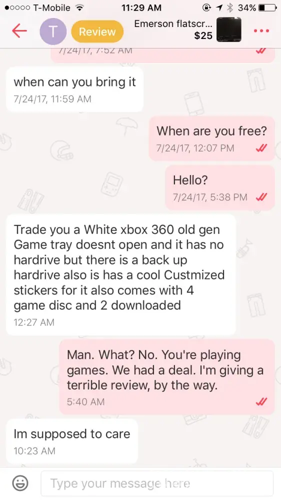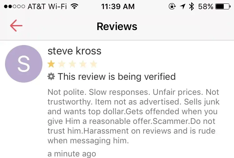 I agreed on a deal with a customer. And he didn't respond for like two days. And then when he did respond, he wanted a different deal. So I gave him a bad review because, well. He was bad. And then he gave me a bad review just because I gave him one. This shouldn't be an option on the website and there should be something done about it.