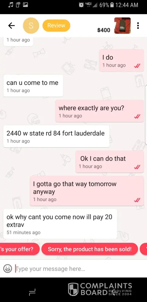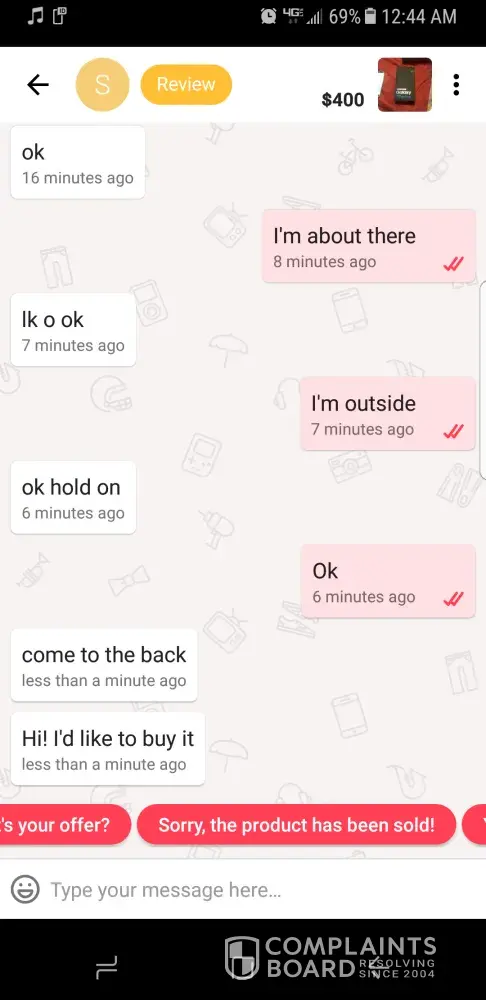 Hi, I am unable to chat with seller or make an offer. Every time a massage pops up, unfortunately Letgo has stopped. I am in San Diego, CA. Area. This is occurring on all my tablet, iPad and Samsung Galaxy phone. I'm unable to purchase anything. Please advise and correct this issue asap.