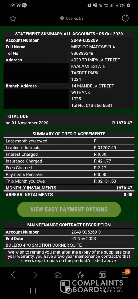 I have been sending email since lock down started trying to make payments arrangements to avoid arrears but every time I call o emails never got a response other dan being tld I wil be in errears.. Fine the lady from the shop contacted me I tld her I need a bank acc where I can deposit the money she was so confused she made me to try so many accounts of which is not a good practice she doesn't evn know how you payments methods works but at the end it's affecting me... Lewis has bad service and right now I paid in the acc your stuff she wasn't evn sure if it's right n the is no way I can follow up if my money reflected or n I can see dat you keep on saying it's over due... Kindly contact me to [protected] because this not a ryt way to treat your customers at all