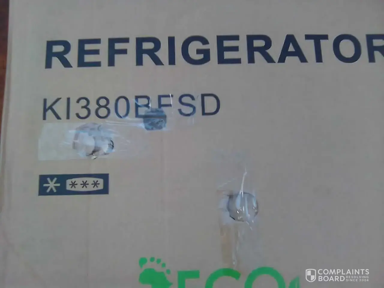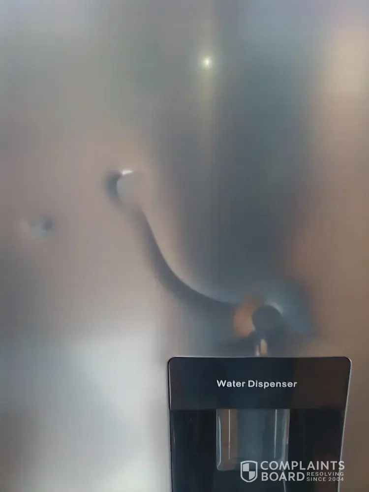 I'd like to file a complain regarding my fridge. Just got back from work to inspect my fridge delivery only to find that it has holes/scratches on the door and tapes on the box