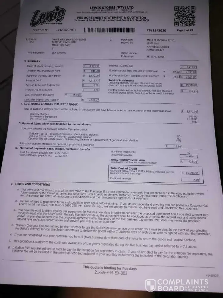 Lewis Group Complaints Page 4 of 7