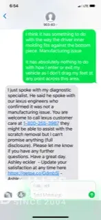 In addition, the paint on our ES started to bubble after 18 months despite the car being kept in a garage and washed weekly. AK gave me a slight discount to repaint the hood, top and trunk of the car. 2 years later the paint is coming off again even though the car is kept in the garage most of the time. I thought Lexus was a quality brand and was surprised I had to repaint a new vehicle and then the second paint job done by your dealer did not last. AK would not help me in anyway about repainting the car a third time and now with the service issues I will be looking elsewhere for our next vehicle, maybe Tesla. Even the Toyota Celica I had for 10 years that was not in a garage as much as our ES the paint never faded except for the bumpers.
