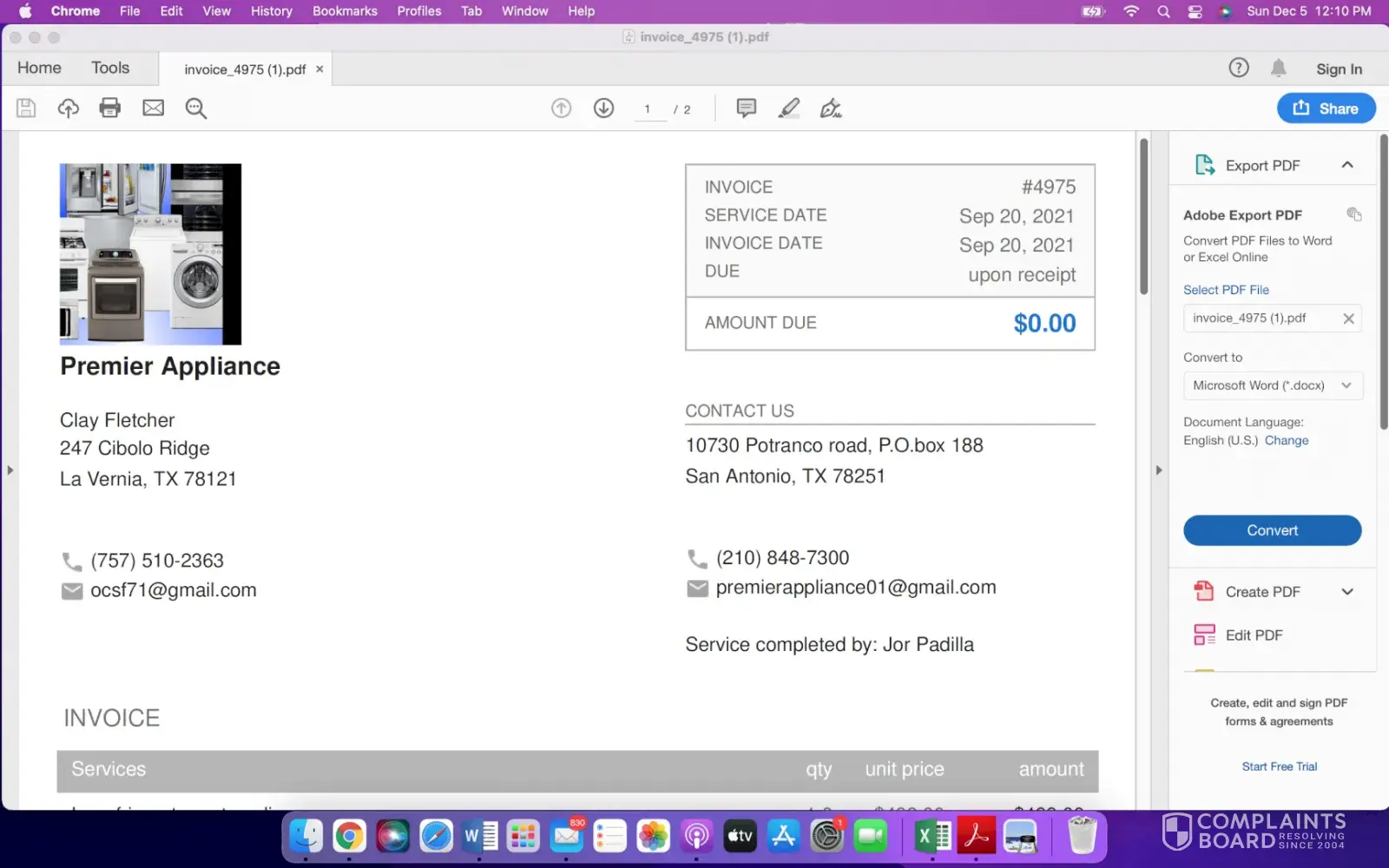The complaint has been investigated and resolved to the customer's satisfaction.
