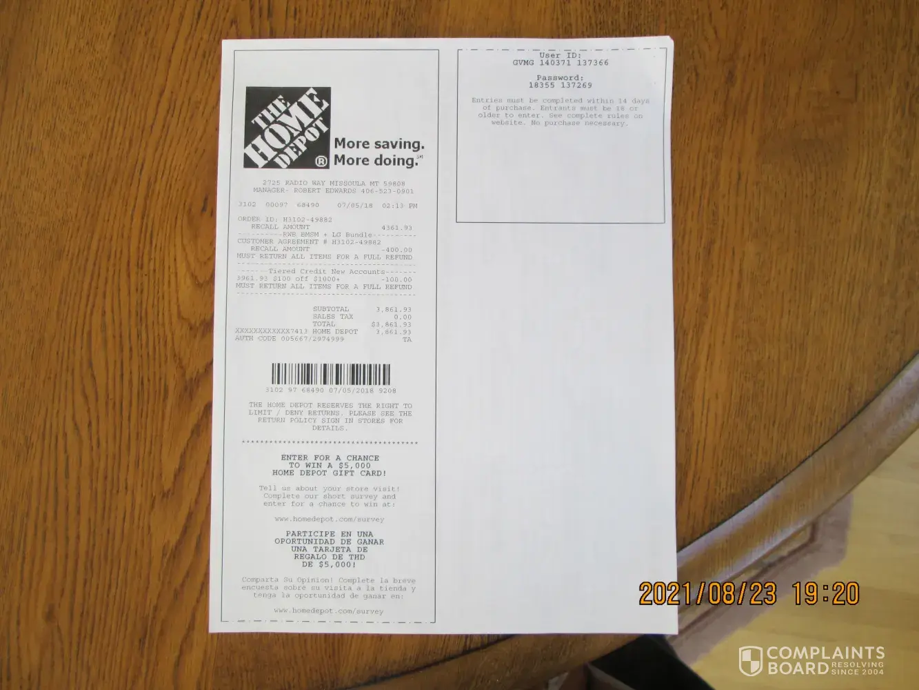On July 5, 2018 from Home Depot in Missoula, Mt. and on June 30, 2021 my refrigerator quit working. I called LG on 7/1, 7/5 and 7/8 2021. Finally a repair technician from A & E came on July 21, 2021 and said it was a bad compressor. On August 9, 2021 the compressor was replaced and the technician left without checking to see if refrigerator was cooling, it WAS NOT, and another appointment was scheduled for 8/12, 2021 and the technician did not show. Another technician came on 8/18/2021 and said the Evaporator was bad. Another technician came on 8/23/2021 (RNN210820082827) and said refrigerator could not be repaired. I paid $1715.46 for the refrigerator and will attach payment info. I think I am entitled to $500 for loss food and no refrigerator for 58 days. Phone contact is [protected].