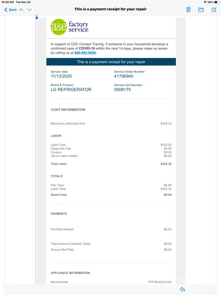 3. We finally get a hold of a technician from Jersey Appliance and came on March 2, 2021, to take a look at our machine. He "fixed" it by screwing parts tightly.Â