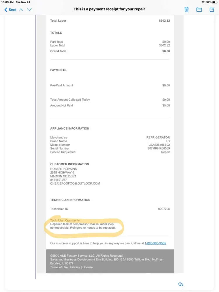 Read full complaintrefrigerator