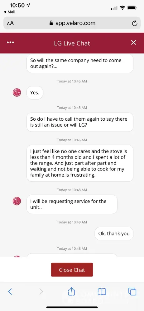 Why inquire about my complaint if you are not going to address it? Still nothing from you or anyone at LG regarding this matter. Truly says a lot about LG.