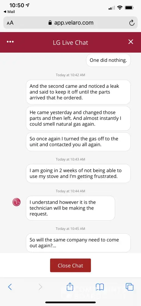 My less than 4 month old stove started to have a natural gas smell coming from the upper oven when the unit was not turned on. I contacted LG Customer Service and they sent my service request to a local appliance repair company. They came out and tightened some fittings. I continued to smell gas so I called again and they sent another tech to look at the stove. He located 2 leaks in the back and had to older parts. After another week of not being able to use my stove, he returned and replaced those 2 valves and tightened more fittings. Then later that same day I could smell gas again. So I called again and the same tech came back 5 days later and found a different leak. He then called LG Customer Service in front of me and did a video share of the leak and recommended that the unit be replaced. LG recommended he replace another regulator and call them back. So he replaced it right there since he had the item and the stove was still leaking gas. So he called them back again and got another rep and did a video share showing the leak. That rep took the video and showed a manager and agreed with the tech and rep that the unit needed to be replaced. I was then issues a claim number and that I would be contacted to setup for the replacement stove to be delivered. I waited 2 days and no calls, so I called and told the whole story and was put on hold and then he hung up. So at this point I am not mad. So I called back and got another person and she looked at my claim and not magically she told me they want the rep to come out and replace more parts on the unit and not replace it which the actual tech said the unit needs to be replaced. I told her that this is not acceptable and if the tech recommends replacement, it needs to be replaced. The unit is leaking natural gas into my home and that is a HUGE safety risk and LG does not care about my or my families safety. I need this resolved now. I can't cook for my family and I spent my hard earned money on an appliance that I can't use because it is a safety hazard. I am "supposed to be called by an manager" on Monday morning 3/1/2021 but at this point I have been lied to and cheated that they won't call and I will have to call yet again or look into legal action. Said that a large company does not care about its consumers, especially during a global pandemic when we need to stay home, be safe, and cook at home. Well guess what, I can't cook at home or be safe just leaving my stove on. Please resolve this immediately!
