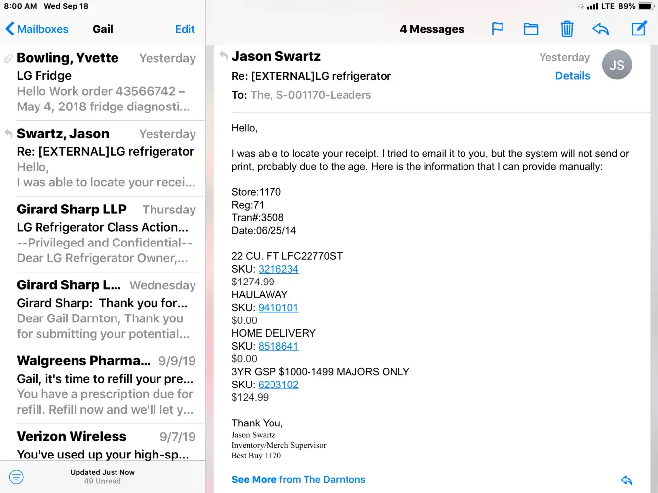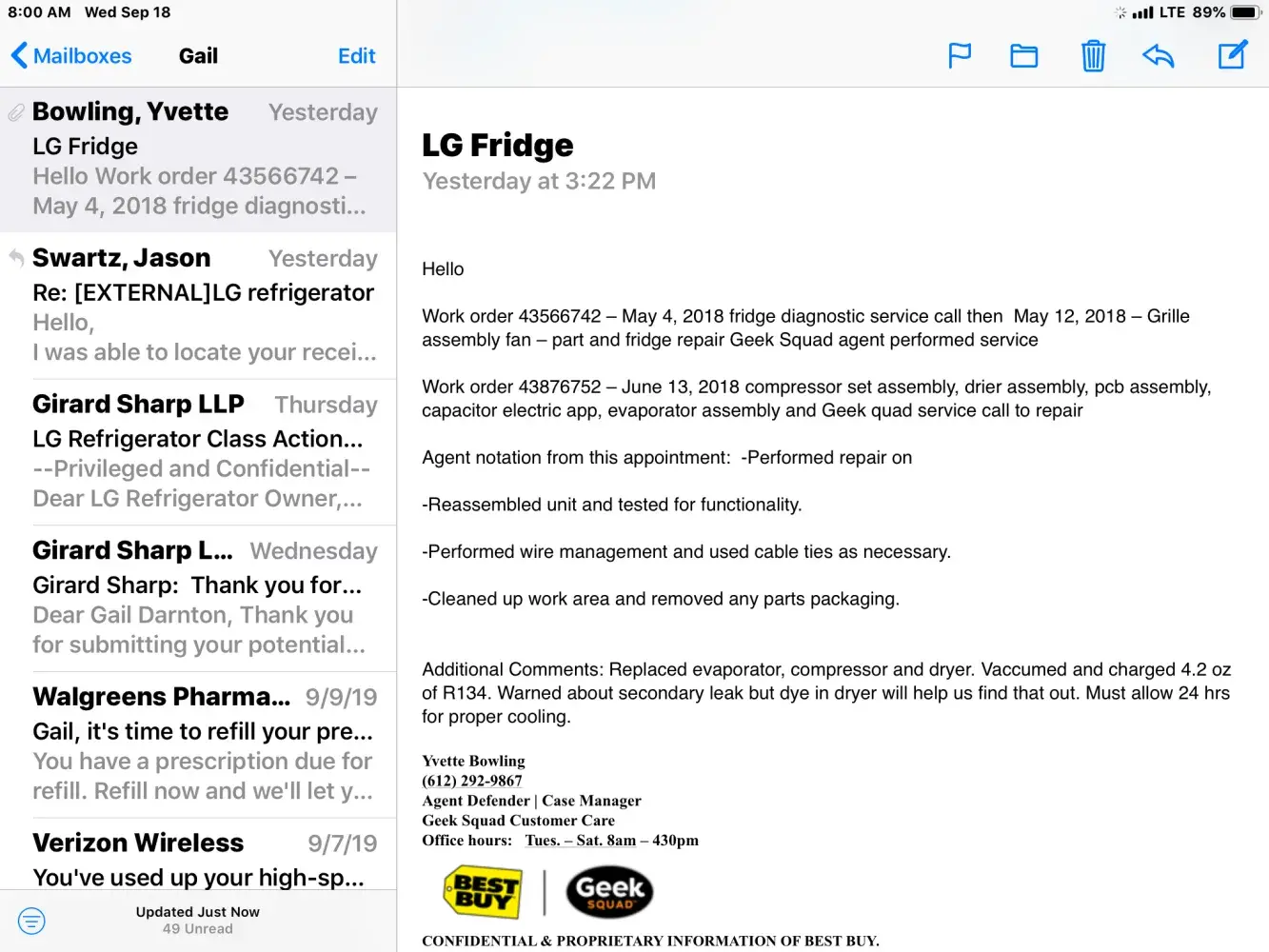 I bought an LG refrigerator in 2014. In 2018 the unit needed a complete makeover. New compressor, motor etc. now the unit is not working at all and was told it would be very expensive to repair! I bought it from Best Buy in Oswego, Illinois. Geek Squad came out about six times! This year Geek Squad refereed me to an outside repair shop. All American Appliance. 630-901-2415. Lost all my food two years in a row! Very unhappy!