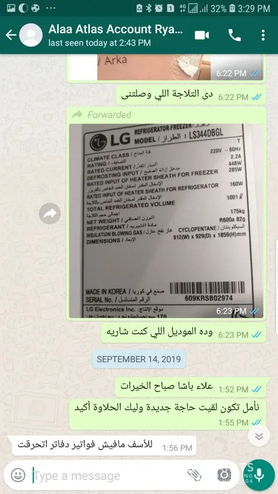 I purchased Ref. LS344DBGL invoice 758164 dated on 21-10-17 and I was on travel so I sent Cargo company to take it from store of LG and then cargo to EGYPT and I didn't open because of travelling and when I opened I found different Model LS292JDHVL after review Cargo invoice no. 1018 is the same as taken from LG store written on REF. cover, so it is mistake from LG store.