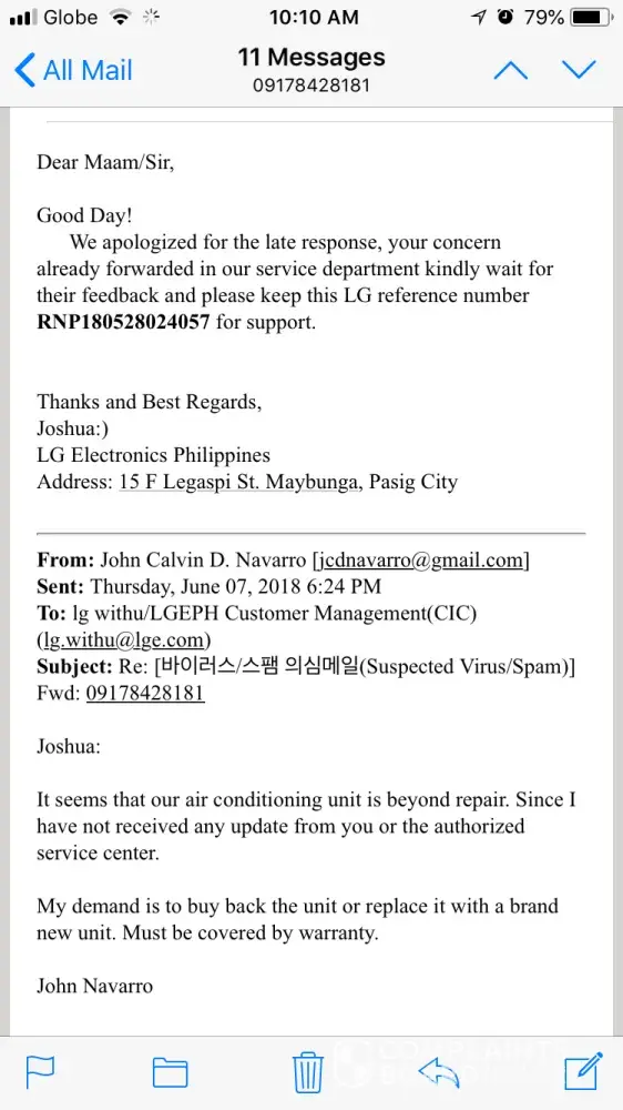 LG is a well known brand and I thought the costumer care guys would be more honest and helpful ! Please advise in this situation or I am afraid to say that I am going to take a legal action against LG.