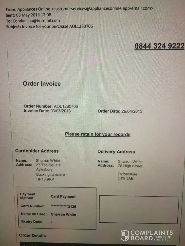 I also attach the original invoice, the email communications from the UK and the model/serial number below.