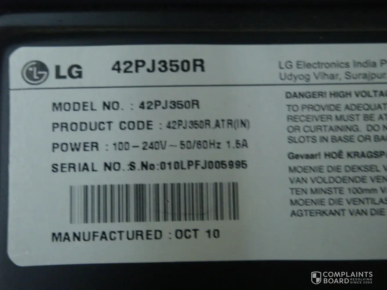 This is one of the customer of LG. We purchased LG 42 inch Plasma on Aug 24 2010 for which we got delivery after almost a month & there was some problem with the TV so it was replaced in the month of 21st Nov 2010 (screen shot attached below).