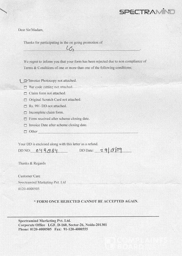 Now after a long time, i got a letter (c.jpg) stating that I have not attached Invoice Photocopy. Which is absolutely incorrect and I believe it’s a game played my LG company. As I have send all the documents as mention in "LG IT CLAIM FORM" and I also believe that there might be more customers cheated by LG Company.