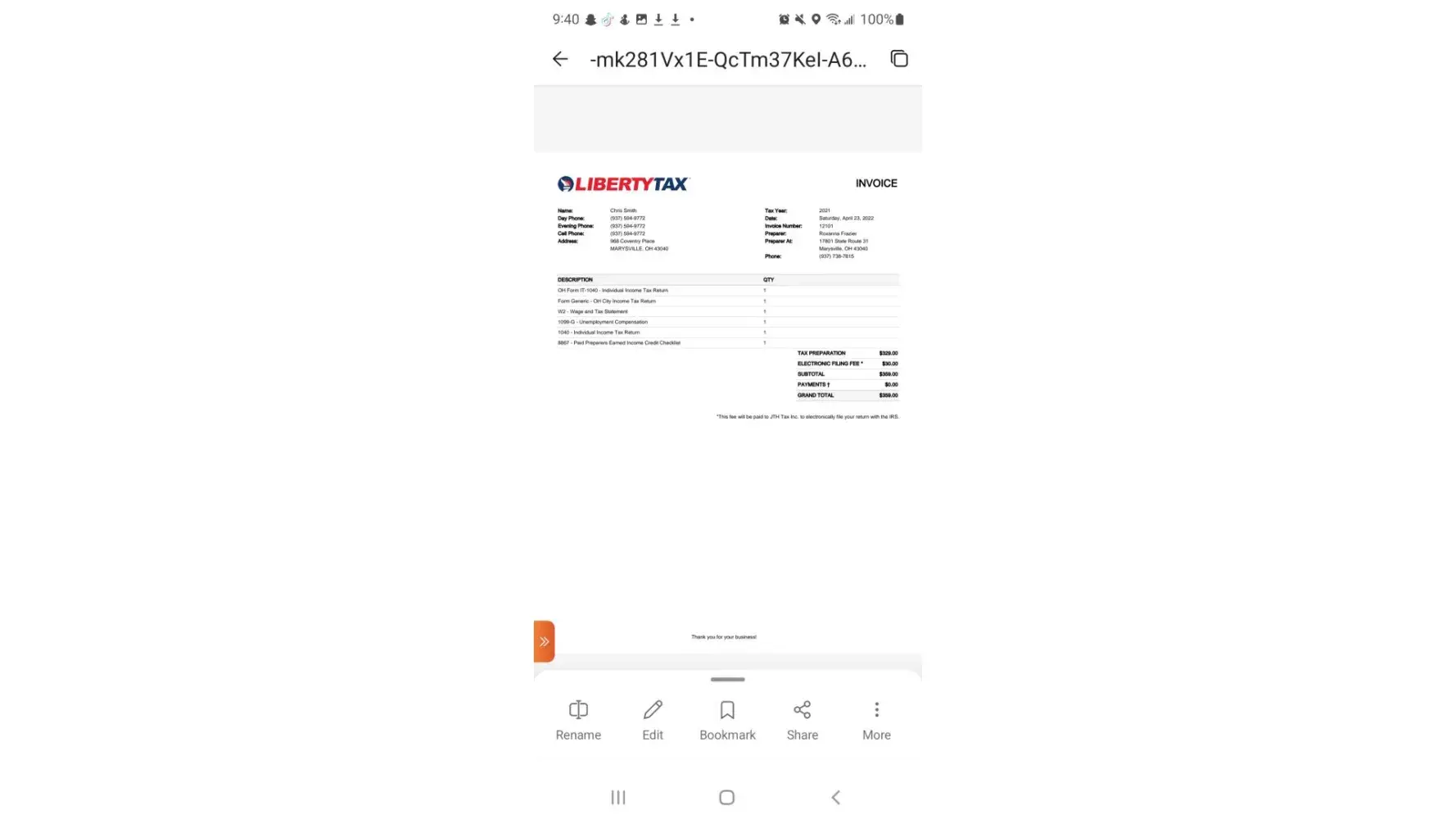 Called liberty Tax to try virtual taxes I normally go into an office. Should have known it was to go to be true. So I uploaded my tax information to the site 4/15. I spoke with the you lady a few times to add more information. Oh by the way my when I was phoned my caller ID read "DOLLR GENERAL". So was this young lady performing Liberty Tax business from a dollar store phone. We owed money provide her with the fee for services. But on 4/20 got a text message that my husband need a IRS pin 4/20 got pin completed SILENCE. I knew taxes were going to be late but OK I paid the fee then SILENCE. Life happened so I went to my liberty tax site to follow up 5/1 "IRS rejected filing" informed virtual tax person. "Oh let me see what the issue is" SILENCE. If I pay for a service I expect customer services and completion of that services once paid.