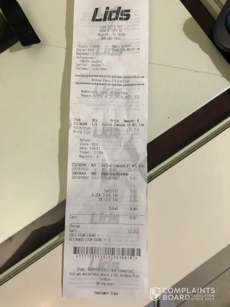 When I contacted them again they said that they need some extra time to refund me. Waited patiently and nothing. Lesson learned, will never order from Lids again.