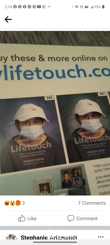 School pictures of my 10 year old grandson with his mask on who would pay good money for school pictures and not be able to see there childs face the mask should of been removed for the shot and than put right back on why would you waste our time and are childs time we give theses pictures or our kids to family members as gifts they want to see there loved ones face not a mask to remind them of a time that was scary for them please fix this unbelievable .