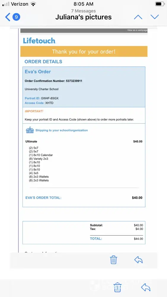 back in February of 2020 I ordered my both of my daughter's school pictures one is in kindergarten the other one is in 6th grade. They took the money off my credit card but I have still not received their pictures. I have tried calling twice and never got an answer. today I checked the mail and I had two big lifetouch envelopes in their got excited open them up and they were empty just a piece of cardboard in a paper telling me to order pictures.