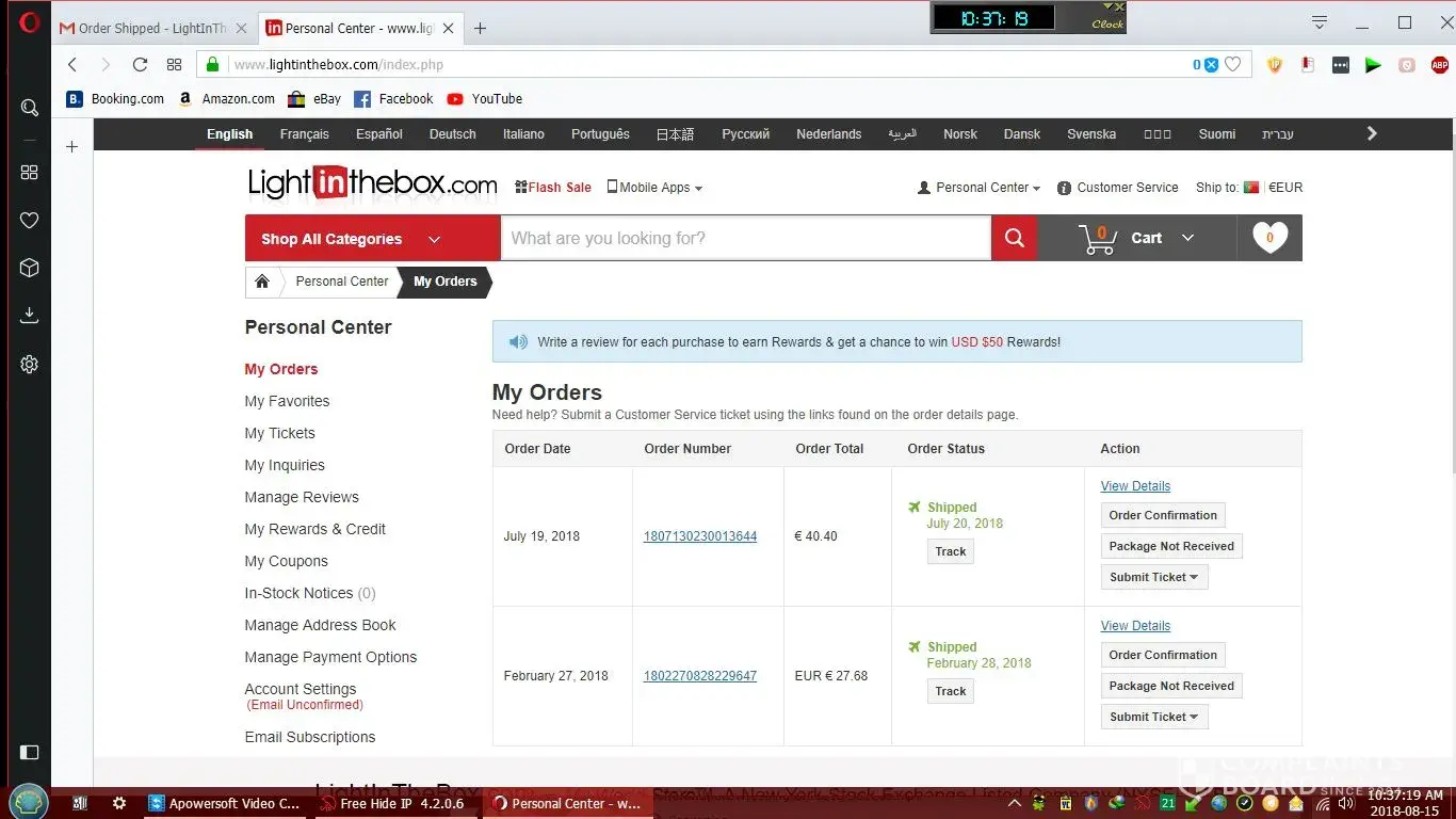 I`ve asked why this should be & they`re still processing what should be a simple logic that either their software or staff are crap! When you login through Facebook there`s no record of any orders with this company & the only way to contact them is through My Orders which this above order is currently not listed. This must take the award for craziest & worst service to-date I`m trying to explain to customs who are not the nicest of people that the people Emailing me about my order can`t even put the purchased item in my A/c! Light In The Box for your Non Service YOU ARE TOTAL CRAP!