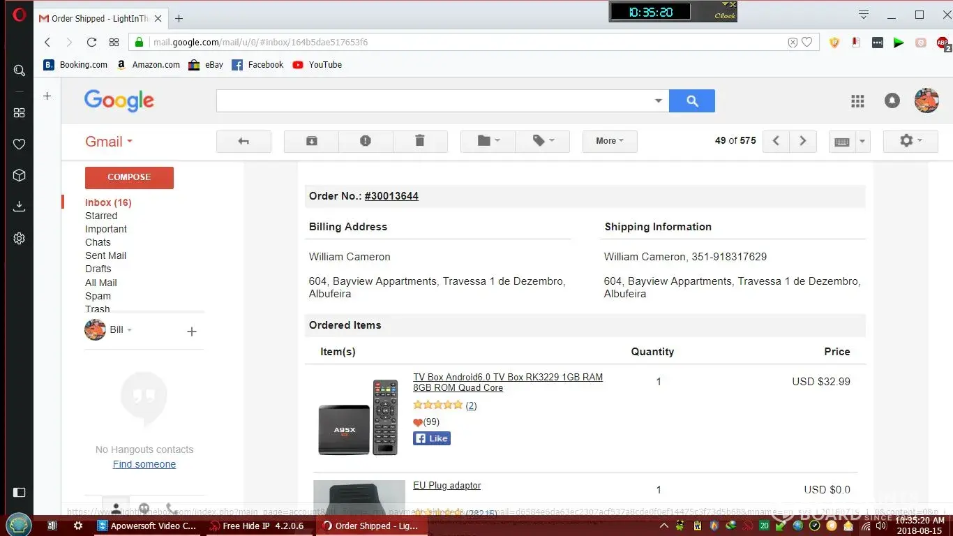 Since this time I have contacted Light in the box many, many, many times to chase up my refund of £ 17.39 but to no avail.