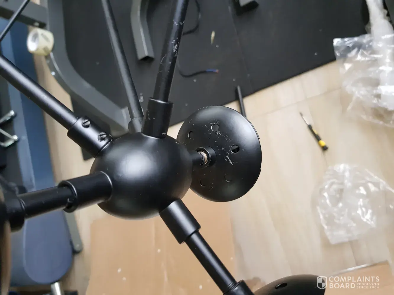 Hi i bought peandant light and have scratches and broken Glass