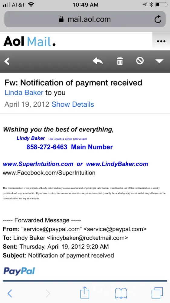 Lindy, you accepted credit card . What is wrong with you ? You can’t expect to lie about me ever paying or any of my friends I referred you to not paying . You eve have on your website that you accept payment for phone readings. Sorry child, you’re just freaking cuz what you did can ruin your business . None of ur clients want their details of our readings blasted everywhere. U messed up . Failed to apologize so now you’ll deal w doubts. Doubt too many want to share details w you when you behave this way. Ihaverecepits charged to my acctsbyyou Lindy. U look worse lying even more.