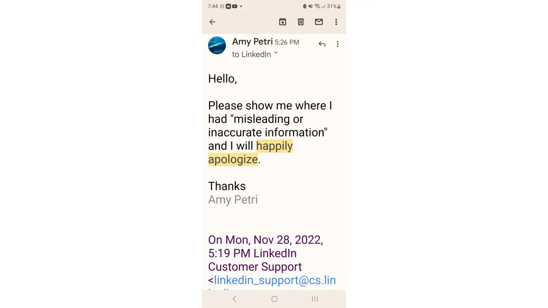 I’m extremely disappointed with how LinkedIn treated my case.