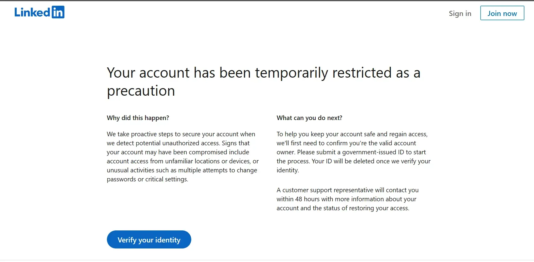 I cannot even make a complaint or appeal without access to LinkedIn, which is frustrating. Throughout the whole process, I have been treated poorly and even asked to provide my passport as proof of verification, which I find to be a massive breach of privacy.