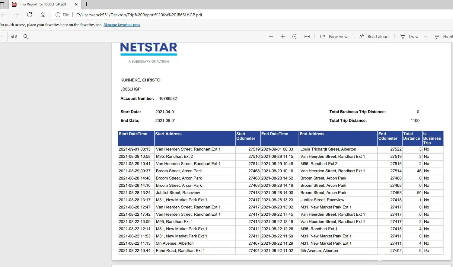 Also see attached tracker report showing the activity on the vehicle