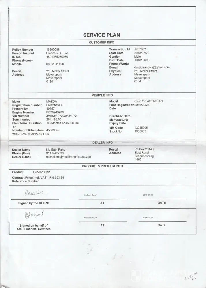 To my astonishment come service 2022 and the dealership phones telling me the above mentioned company refuses to authorise my claim and that I need to phone them. Long story short I pretty much had to beg them the whole day before my car was serviced. The one thing that did tick me off was that they had to refer my query back to the original call where the sale transaction was confirmed. Which to this day I doubt was done. Also according to them the policy was incepted incorrectly(which is why they couldn't approve my claim.) and to this day I have never received my policy documentation.