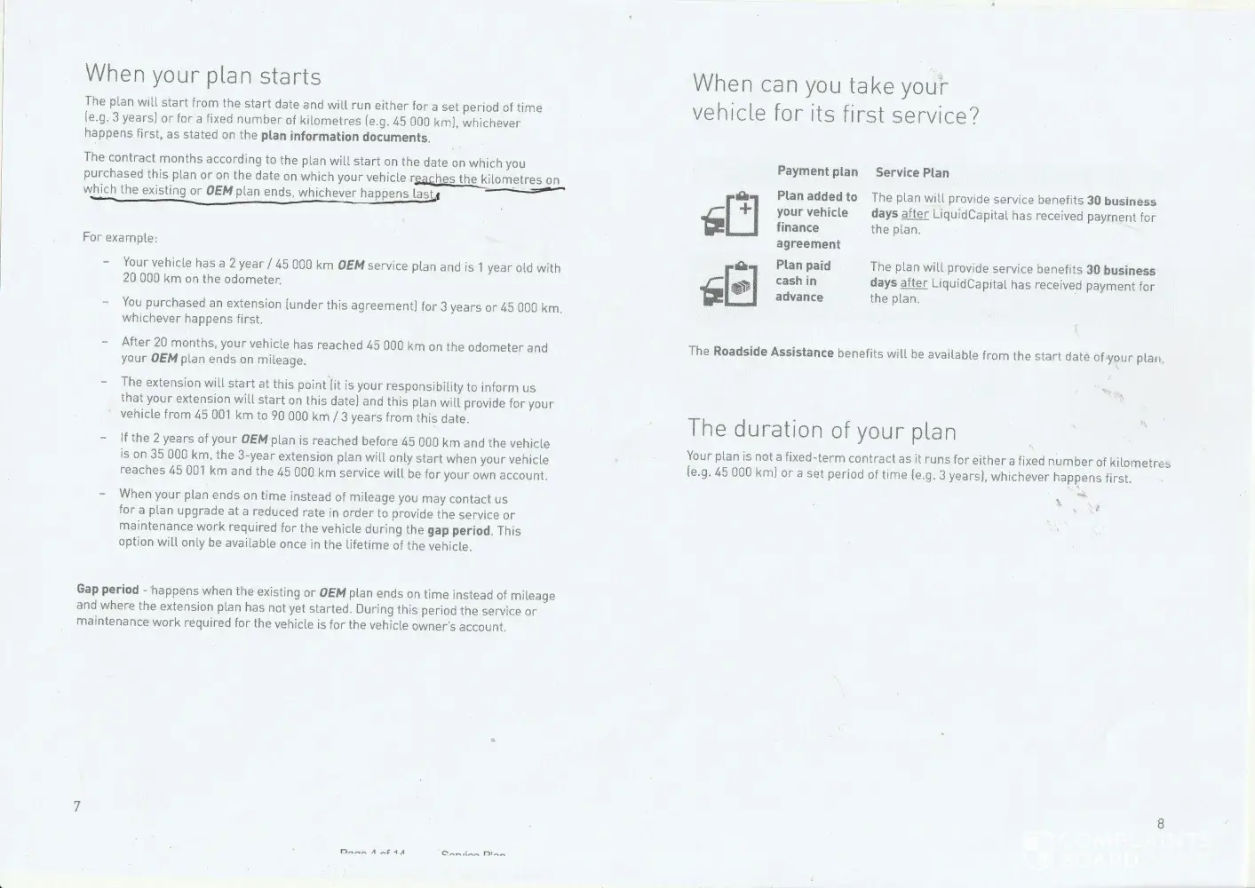With the car I also purhased a service plan from liquid capital (fully paid) for 36 months / 45 000 km which started end september 2019 (or so I thought) as per the policy wording :