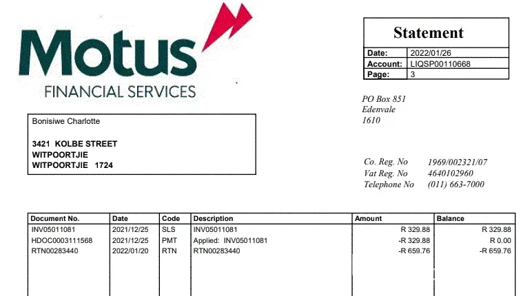 After complaining about the debit orders, Phale Malete told me that since I've been a loyal customer the balance of around R3600 or so will be written off. This was rather very suspicious to me since liquid capital never misses an opportunity to collect money from clients. I asked for a financial statement with a breakdown of what I paid since day 1 up until now. I noticed that the statement appeared as though there's money due to me