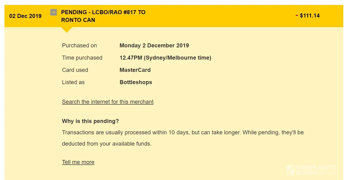 Attached is a screen shot of my online pending payment to the LCBO that I have no access to until they agree to either complete my purchase or release the money back to me.