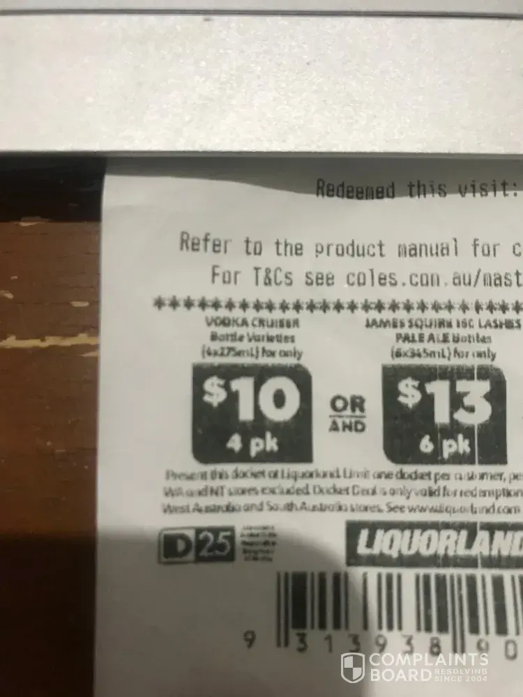 Regarding the recent Liquorland 'shopper docket' deals which are located at the very bottom of the Coles docket.