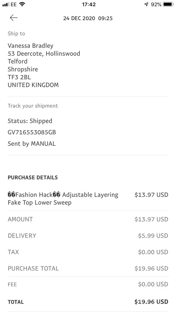 Desired outcome: Goods delivered as instructed or refund of full amount