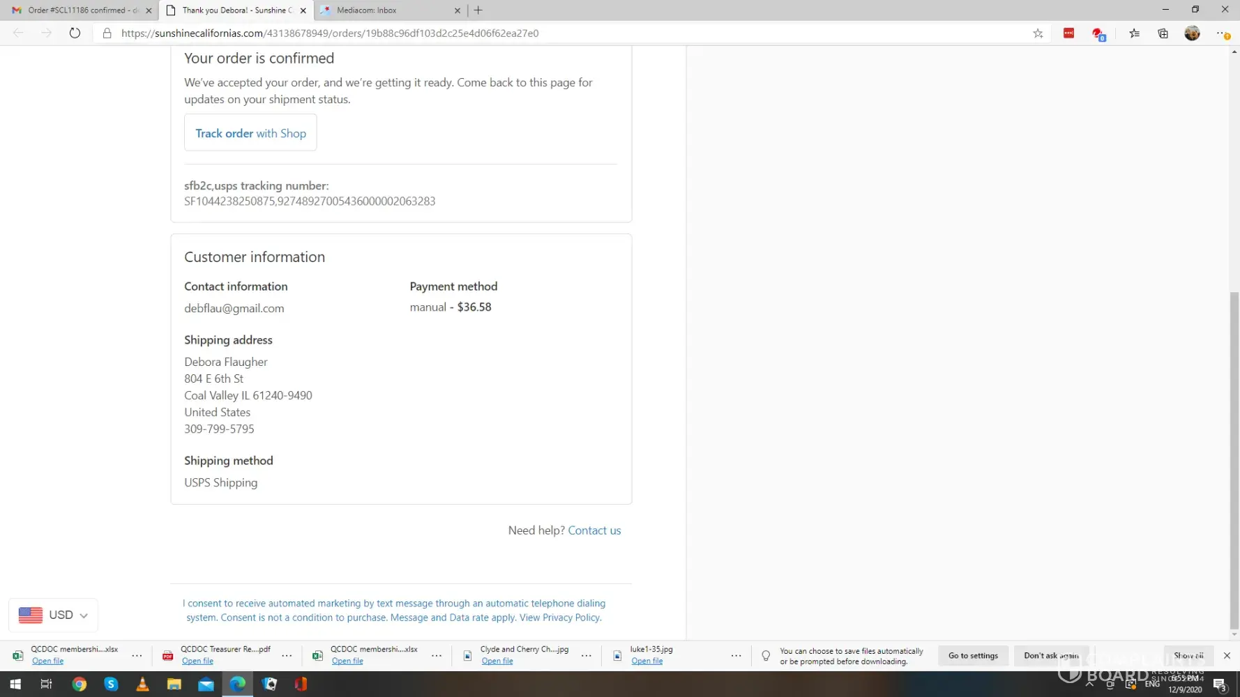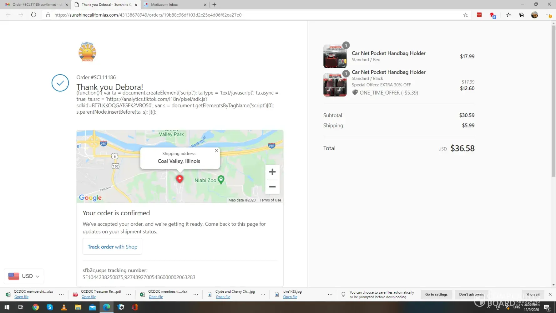 I will attach screen shots of the email sent to me confirming the order and confirming shipment...4 screenshots. Further codes and info are on the screenshots.