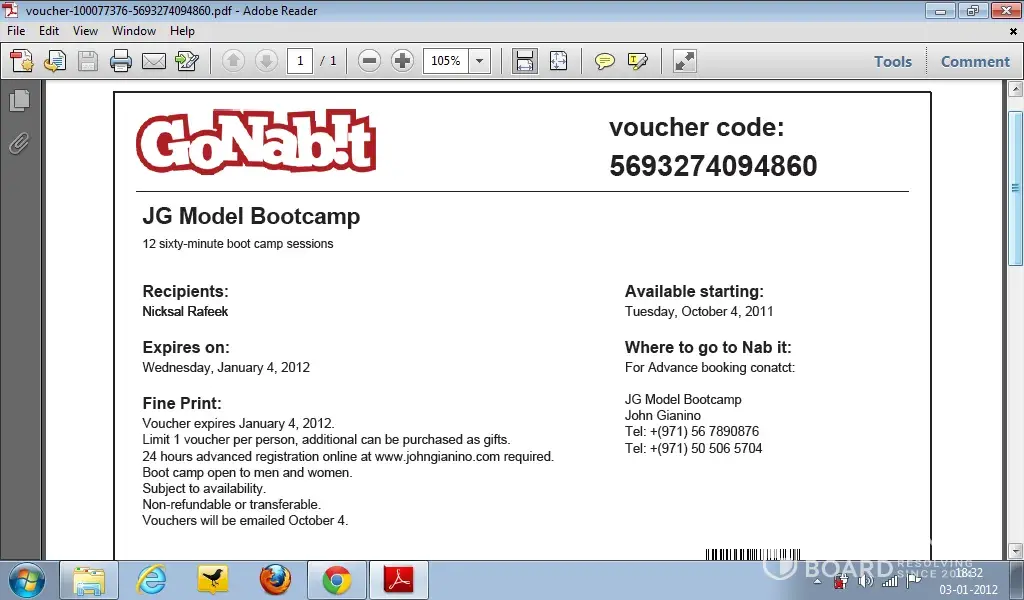 I purchased a deal voucher from Gonabit (now living social) few months back. The voucher expires only on 4/1/2012. But when I called up the merchant to redeem it today (3/1/2012), the merchant refused saying that the deal has expired. When I contacted Living Social to whom I paid the money, they said they would do nothing about it. Guys beware of such fraudulent deals in the future!