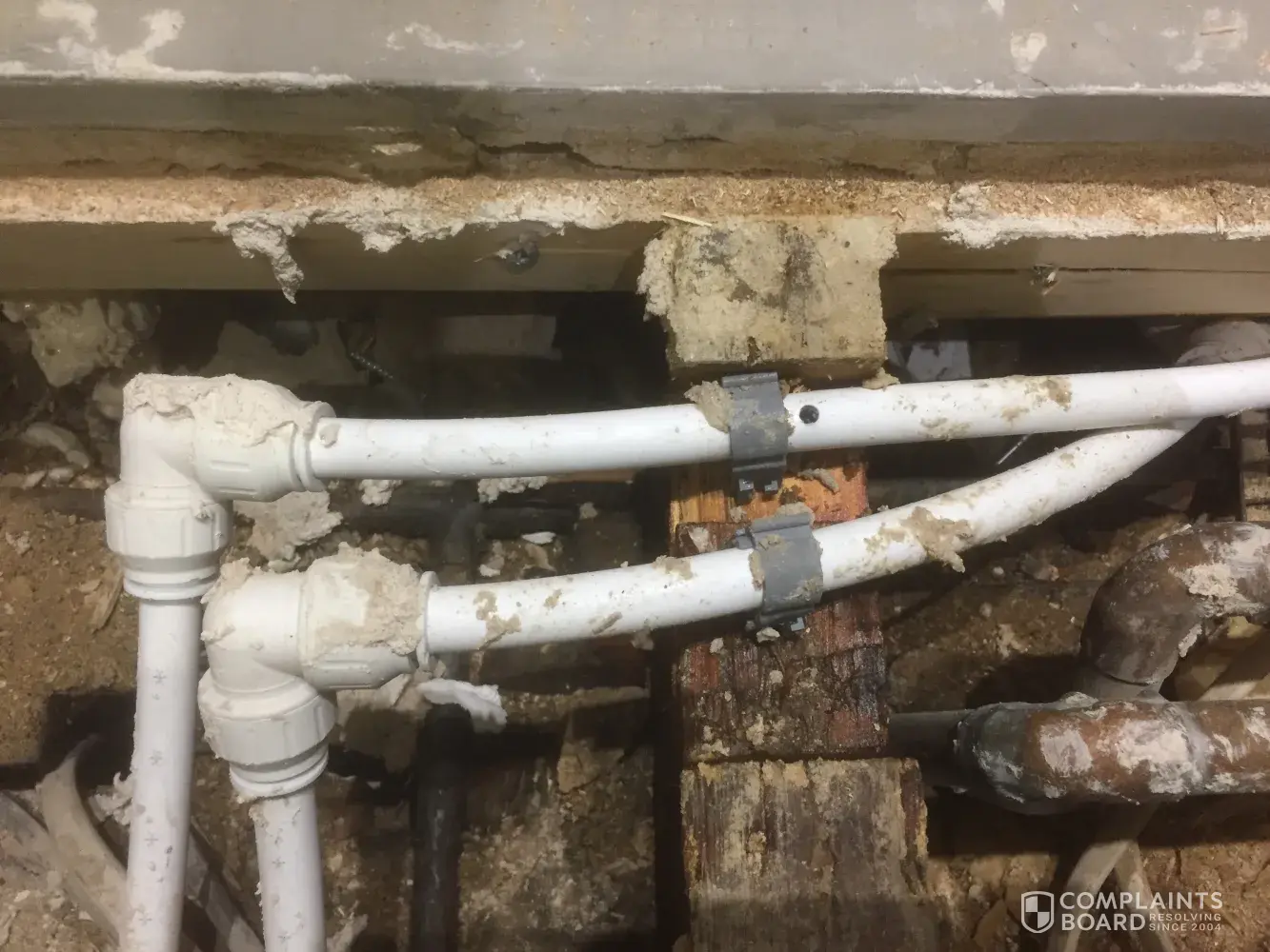 We called someone out as an emergency and they showed us that he had screwed through the pipe - he had used at 3" screw to fix a 1/2" board. We contacted Hudson and sent him pictures - No apology - he simply sent a message telling us the bathroom is cursed!