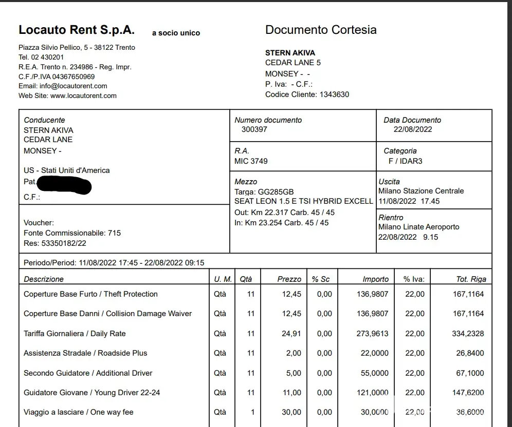 Need final rental agreement from Locautorental Enterprise. Rent a VWGolf from Palermo Airport fro locaauto enterprise on September 9th and returned it September 27th 2019 plate #FW517JE. Have tried numerous emails, telephone call. Seems impossible to get a hold of this company. If there is anyway way you could help much appreciated. [protected]@yahoo.com. Phone #[protected]. Thank you for your time.
