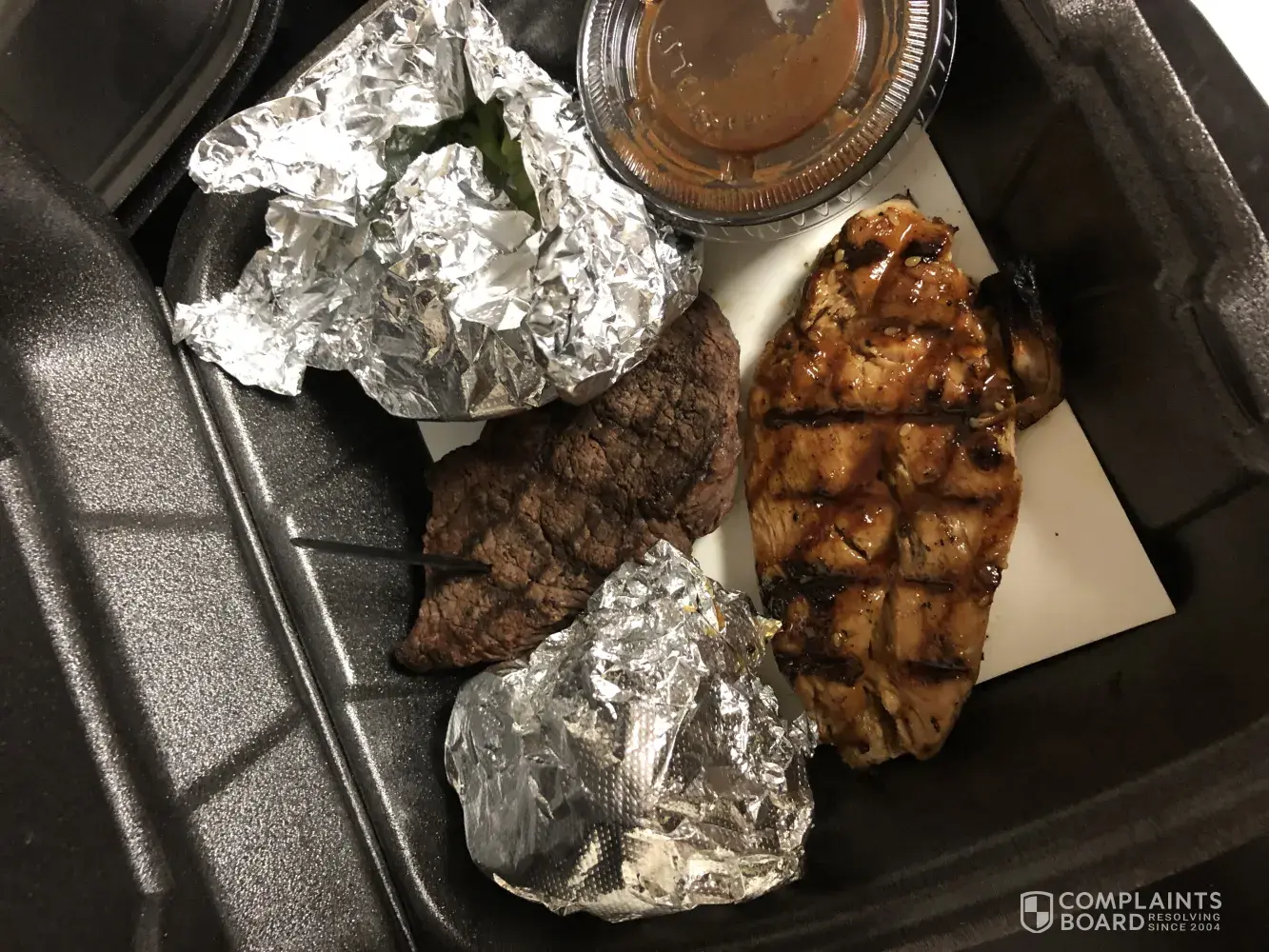 On Sunday Sept 22, 2019, my husband came in and ordered 2 set of grilled wings, one was bar b que & chipotle w/corn, baked potatoes and a garden salad. The wings was burnt and the corn was not cooked. I called the store on this evening for 15 minutes and they kept me on hold and never came back to the telephone. I called the store starting @ 6:32 pm and a...