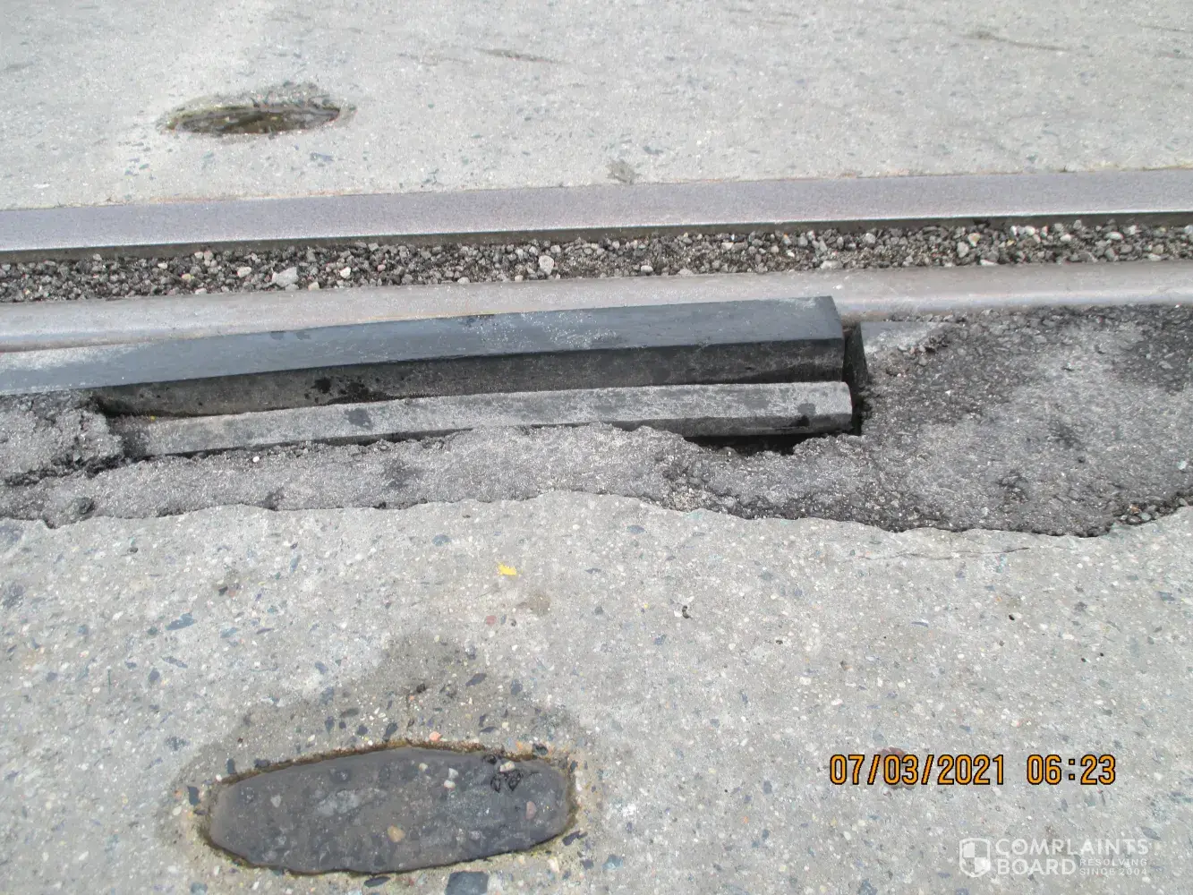 Long Island Rail Road [LIRR] Track Crossing Road, Part of Track support came loose see photo's